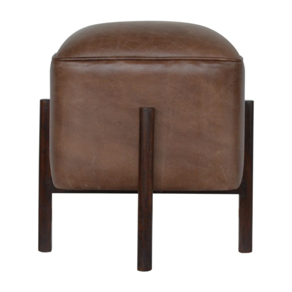 Brown Leather Footstool with Solid Wood Legs Compliance