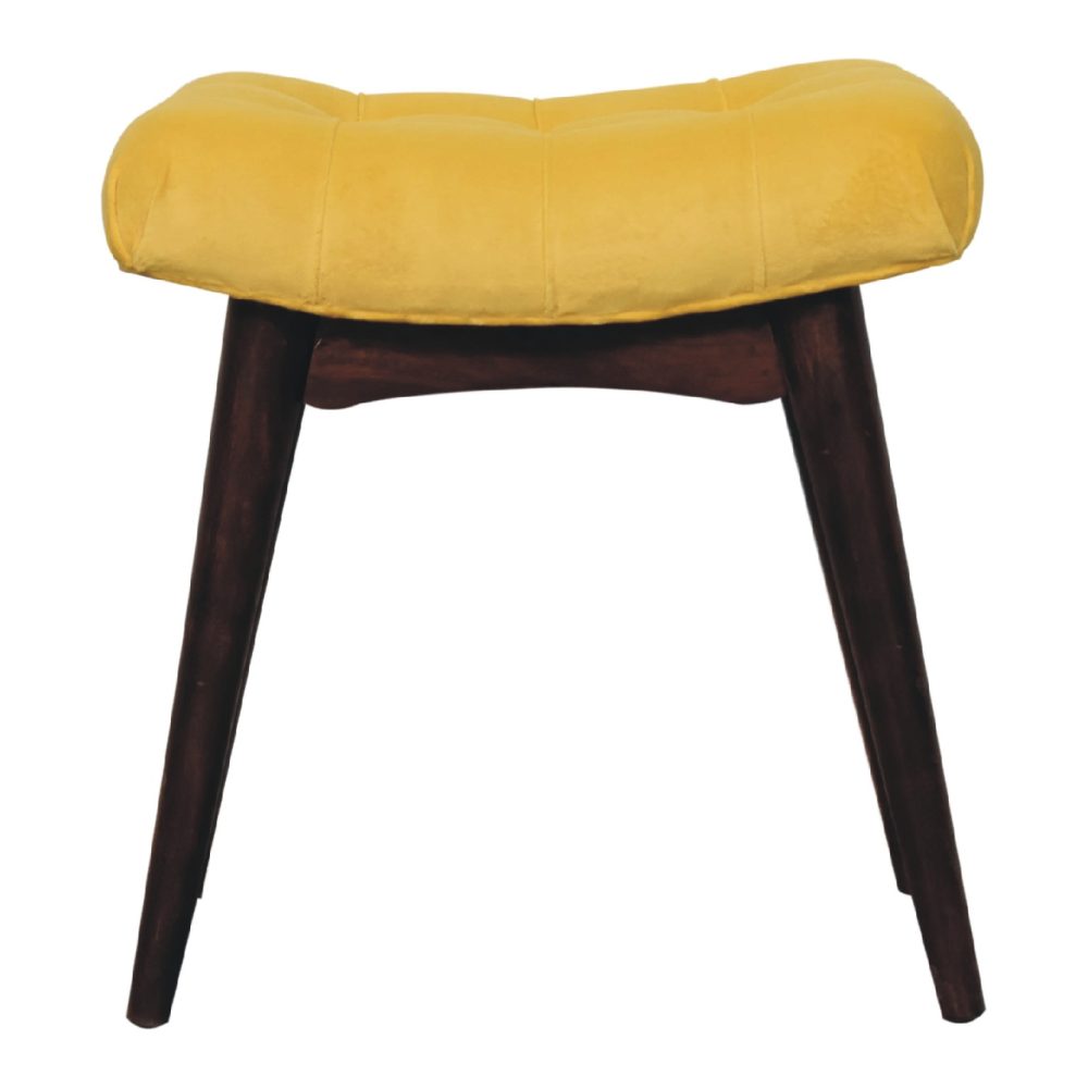 Wholesale Mini Mustard Cotton Velvet Curved Bench